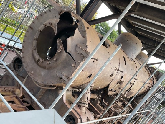Tue 11 Oct 2022, Day 29/61, 2/5. I’ve seen Koreans get emotional at the sight of this train. It ran between South & North but is now on show next to a sign: ‘A railroad train wants to run.’ Bombed & derailed in December 1950, it has over 1,000 bullet holes.