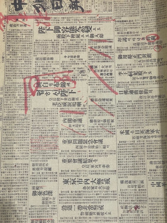 Wed 5 Oct 2022, Day 23/61. Rather to continue today’s theme, an early exhibit in the Museum shows the censorship marks made in red on a Korean newspaper, Jung-oe Ilbo, during the Japanese colonial era.