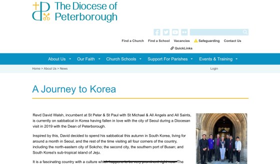 Rather self-referential. But here’s the Diocese of Peterborough website about my journey: https://www.peterborough-diocese.org.uk/aboutus/news/a-journey-to-korea.php